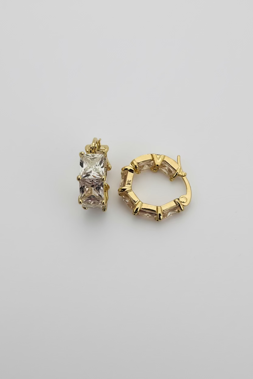 If you love a gorgeous huggie style earring! This is the one! Cubic Zirconia, Geometric 14K Gold Plated.