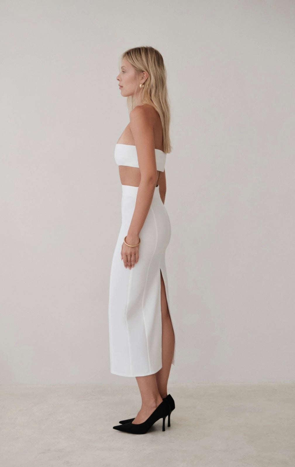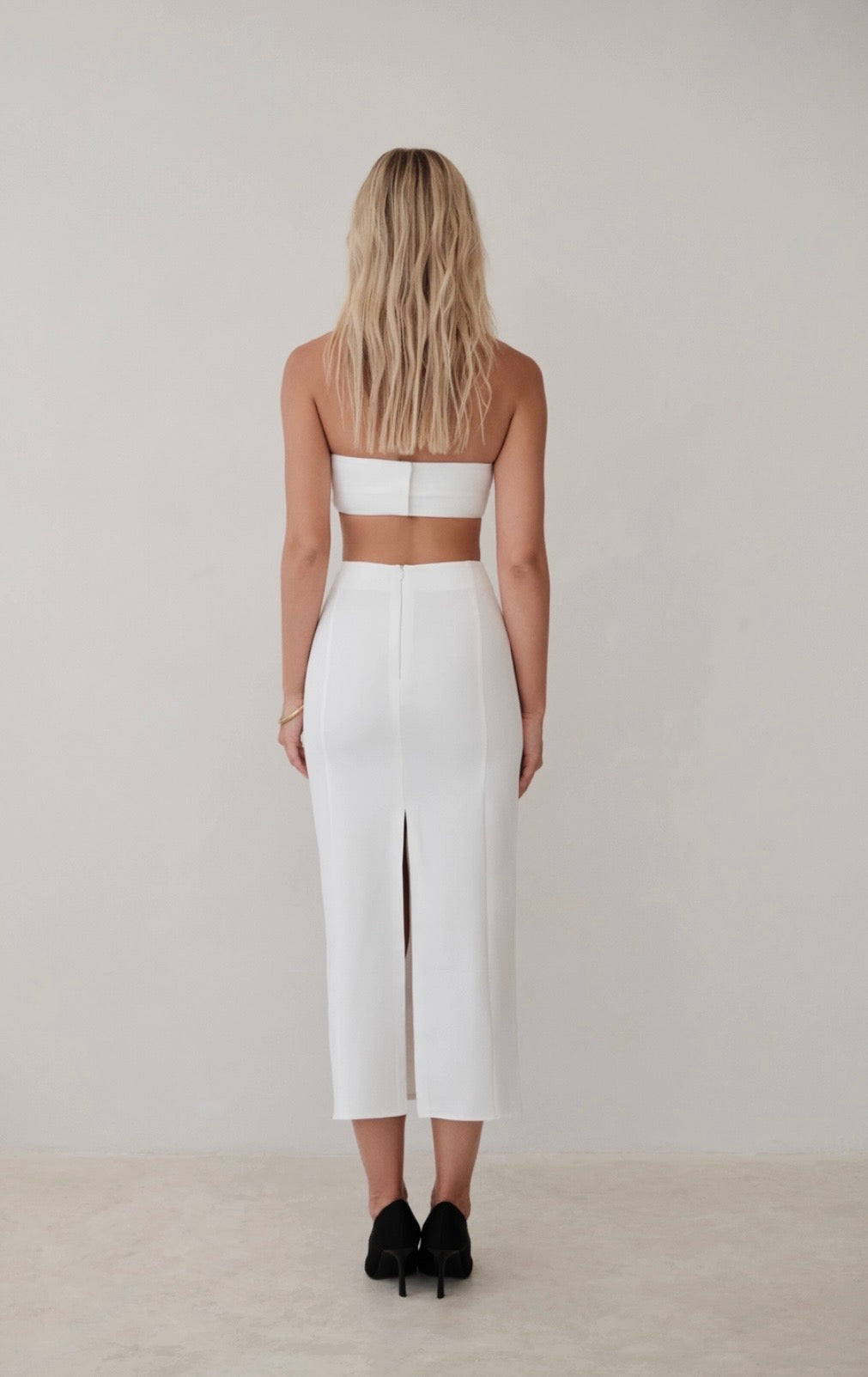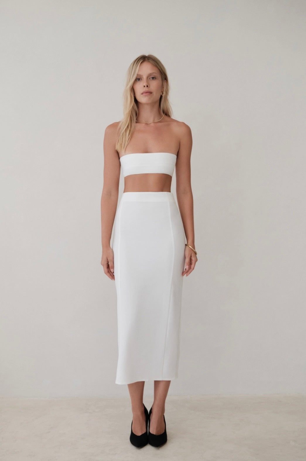 Timeless elegance meets modern versatility, an exquisite high-waisted pencil midi skirt designed to flatter and empower. Its sleek, tailored silhouette hugs the figure in all the right places, while the midi length adds a touch of sophistication. Crafted from a luxurious fabric blend. This gorgeous skirt offers a smooth texture and lightweight comfort, ensuring effortless wearability. The skirt runs very very small but it beautiful, size up! (2-4: M, 6-8: L, 10-12: XL)